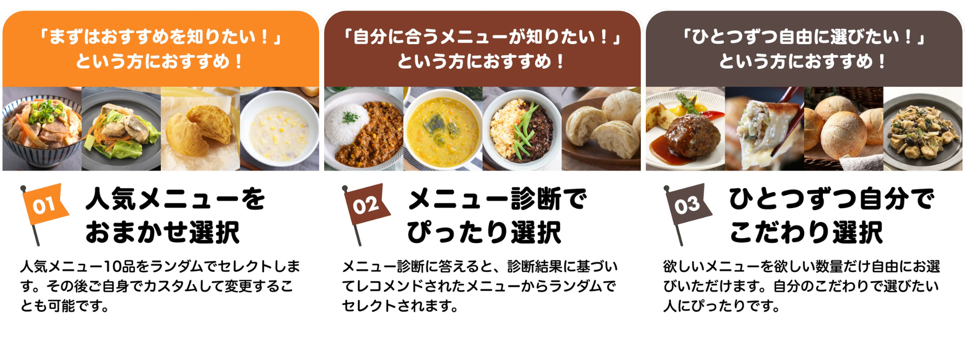 homealをより手軽にお楽しみいただけるように、お好みにあわせてセレクトできる3つのメニュープランからお選びいただけます。
