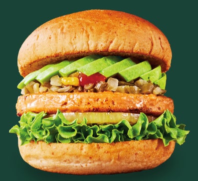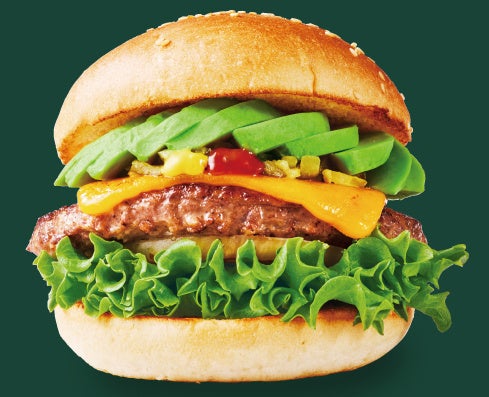 100%植物性由来の大豆パティに、アボカドを合わせ糖質約45%オフの低糖質バンズ(当社ゴマバンズ比較)でサンドしたヘルシーバーガー。