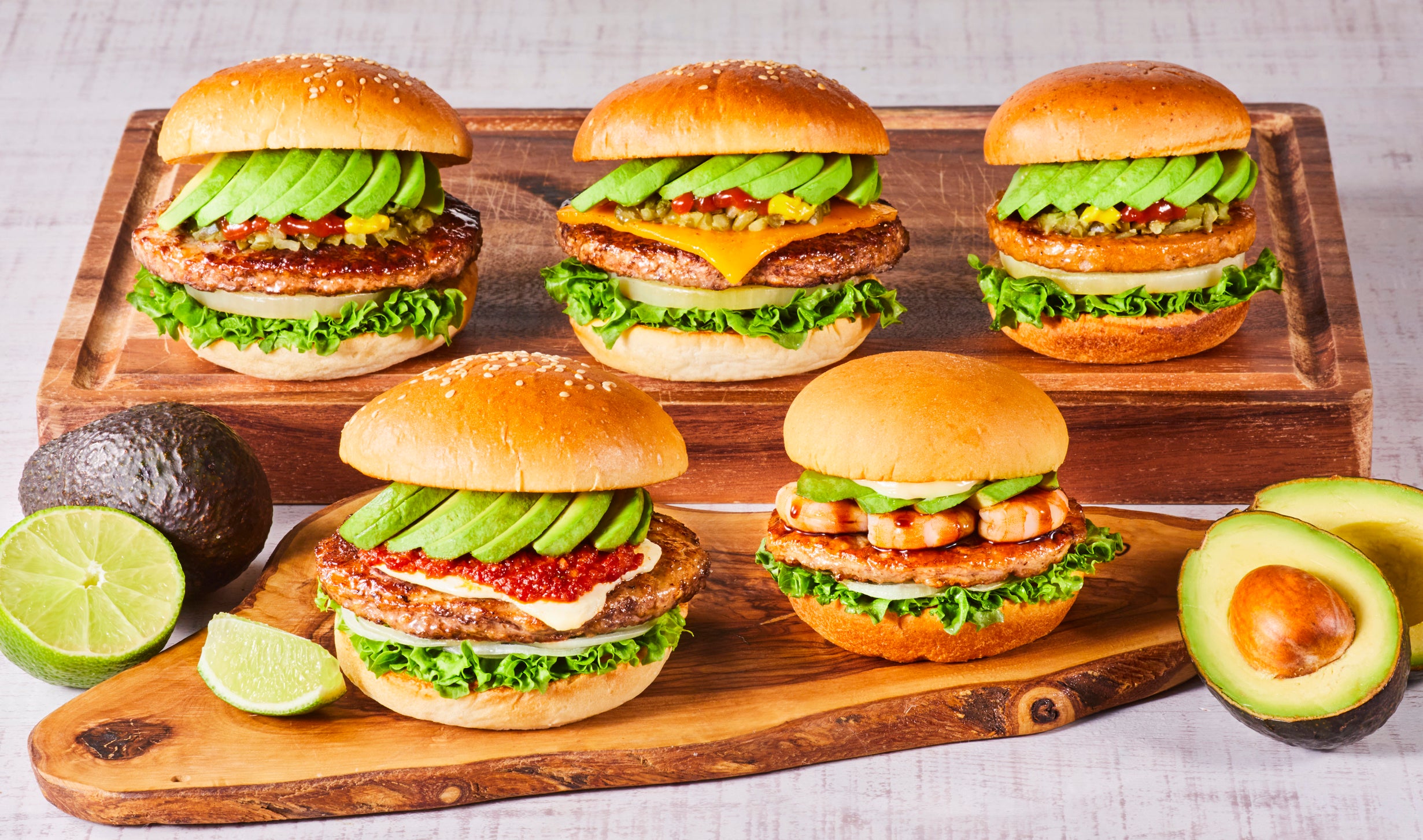 コロワイドグループの株式会社フレッシュネス(代表取締役社長:齋藤 健太朗/本社:神奈川県横浜市西区)は、2023年3月8日(水)より、創業30周年を迎えたハンバーガーチェーン「フレッシュネスバーガー」にて、店内仕込みの新鮮な「生」アボカドを使った2種の新商品「ライム香る クラシックアボカドハリッサクリームチーズバーガー」と「アボカドシュリンプバルサミコクリームバーガー」を、期間限定販売。通年販売をしているアボカドバーガー3種を加えた計5種のアボカドバーガーがお楽しみいただけるアボカドフェアを実施いたします。