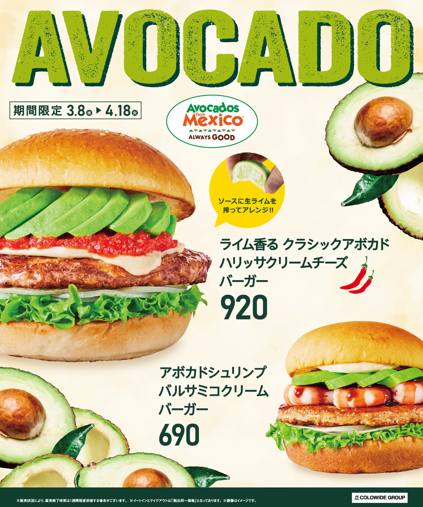 ライム香る クラシックアボカドハリッサクリームチーズバーガー(920円/期間限定)