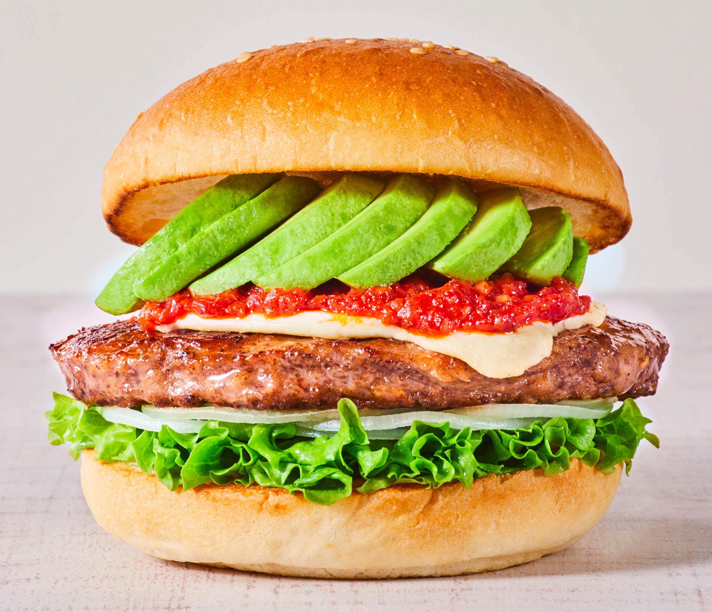 ボリューム満点のプレミアムパティにアボカドを贅沢にトッピング。シンプルだからこそアボカドの美味しさをダイレクトに感じられます。