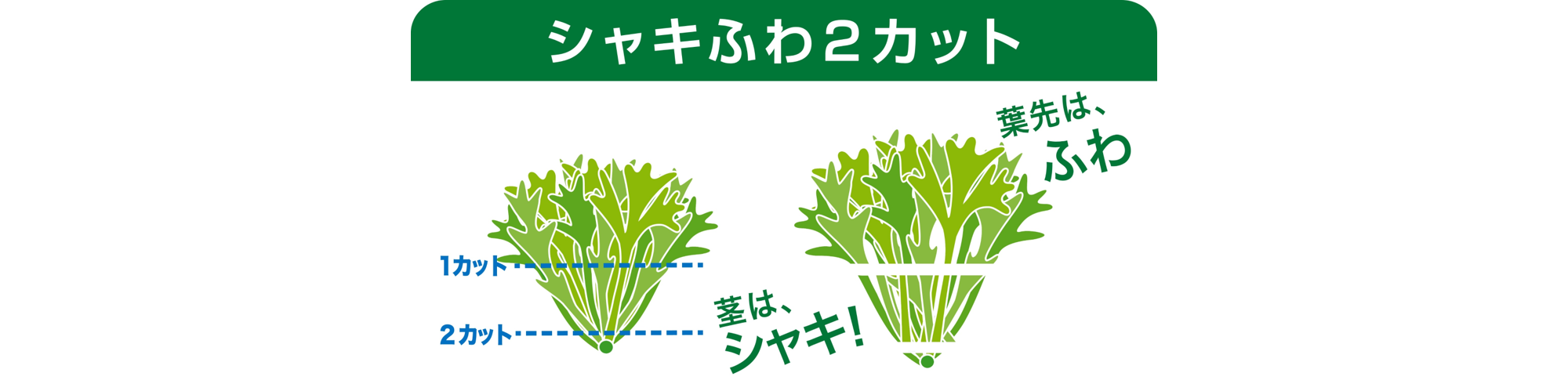 ※サッと洗って2カットするだけで、葉が分かれて2つの食感を楽しめます