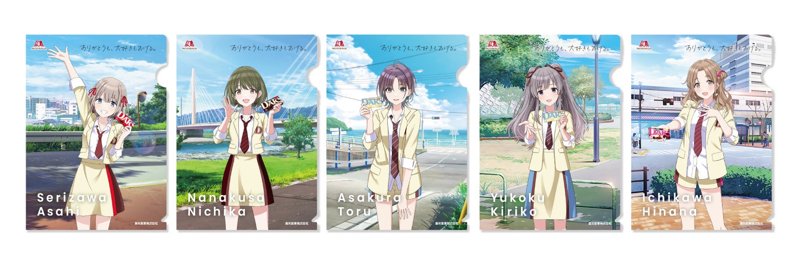 また、『アイドルマスター シャイニーカラーズ』に登場する283プロダクション所属アイドル「芹沢あさひ」「七草にちか」「浅倉 透」「幽谷霧子」「市川雛菜」の5名を「DARS」のブランドアンバサダーに、”自らをチョコアイドルと名乗るほどのチョコ好き”である「園田智代子」を、商品の魅力を伝えつつ5名のブランドアンバサダーをサポートする「名誉アンバサダー」に起用します。昨年2月に同様のキャンペーンを実施した際の反響を受け、2年連続で283プロダクションへのオファーを実施。今回は多様な想いの伝え方や「DARS」の魅力を発信するべく、「王道のかわいらしさだけではない、独自の個性でファンを魅了している点」に着目してのメンバー起用となります。これに合わせ3月1日(水)より、各種動画公開、様々なプレゼントキャンペーン、ゲーム内コラボを行います。
