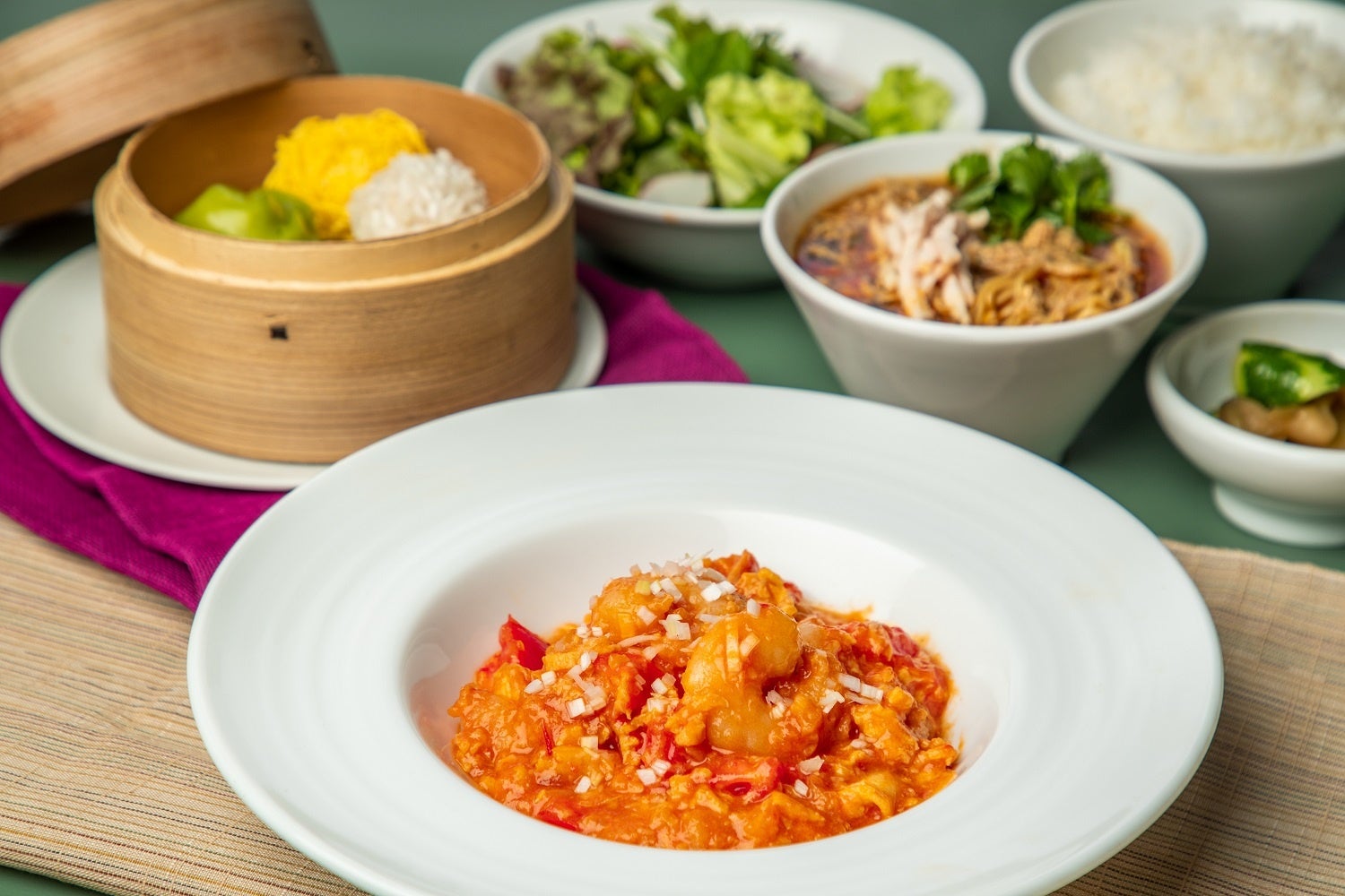 3月ランチメニューは中華尽くしの「フレッシュトマトのエビチリ中華セット」が登場