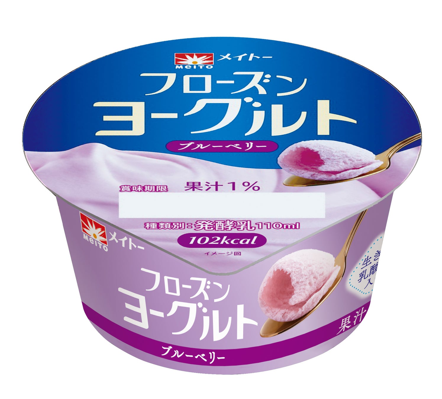 今回新たに発売となる「フローズンヨーグルトブルーベリー」は、“甘いものが食べたいけれど、カロリーは抑えたい”というニーズに応えたフローズンヨーグルトです。102kcalながらもブルーベリーのフルーティーな香りと程よい甘さを楽しめます。生きた乳酸菌入りで、おいしく健康をサポートします。
