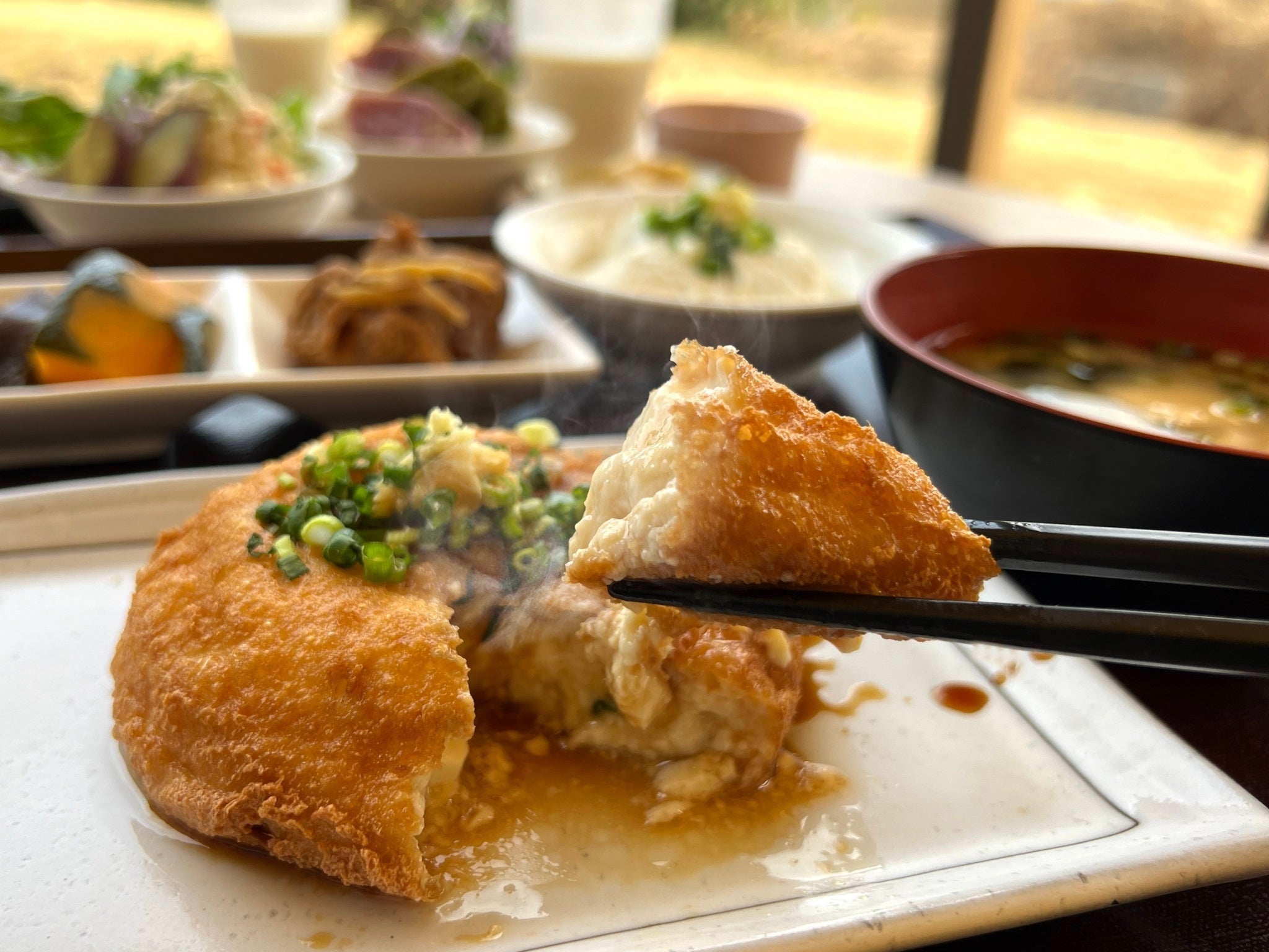 株式会社愛しとーと(本社:福岡県那珂川市、代表取締役兼CEO 岩本初恵)が運営する山の上のお豆腐屋さん「五ケ山豆腐」では 併設するレストランで豆腐料理を味わえます。2023年3月より新たに「ざる豆腐の厚揚げ御膳」が登場しました。定番メニューの大豆ミートのハンバーグ御膳、豆乳クリームコロッケ御膳、五ケ山ダムカレー御膳とともに、全て豆腐バイキング付き。豆腐づくしのヘルシーグルメをお楽しみください。