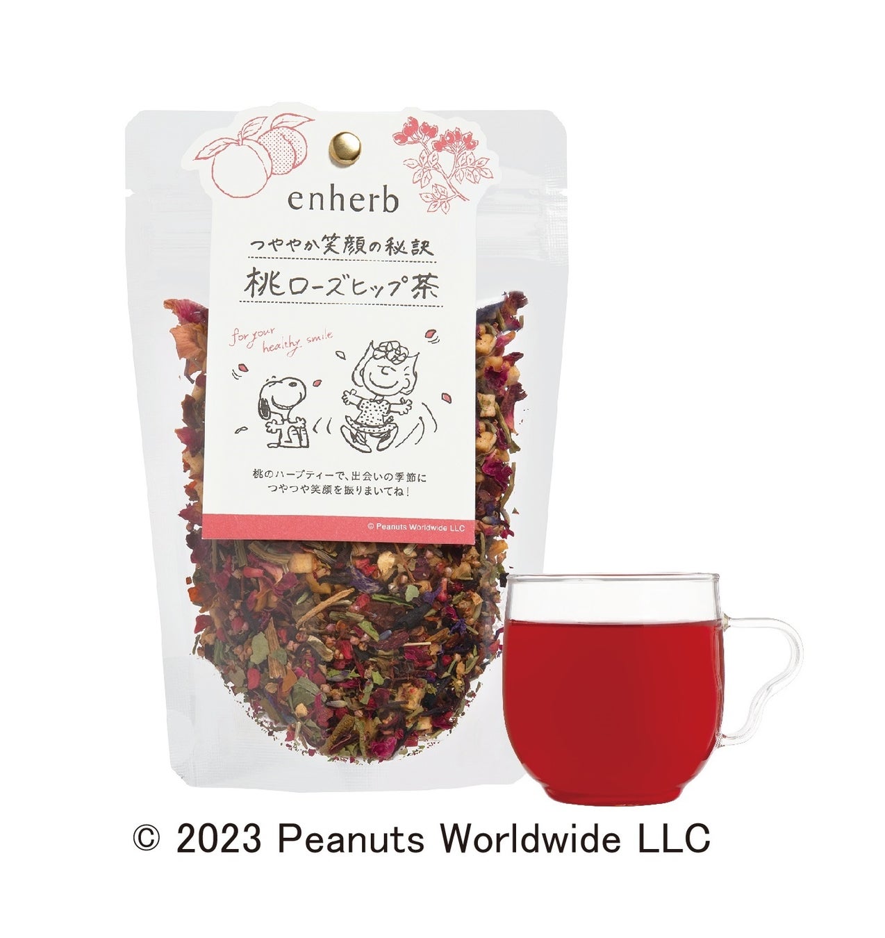 PEANUTSタグ付 ハーブティー「つややか笑顔の秘訣 桃ローズヒップ茶」