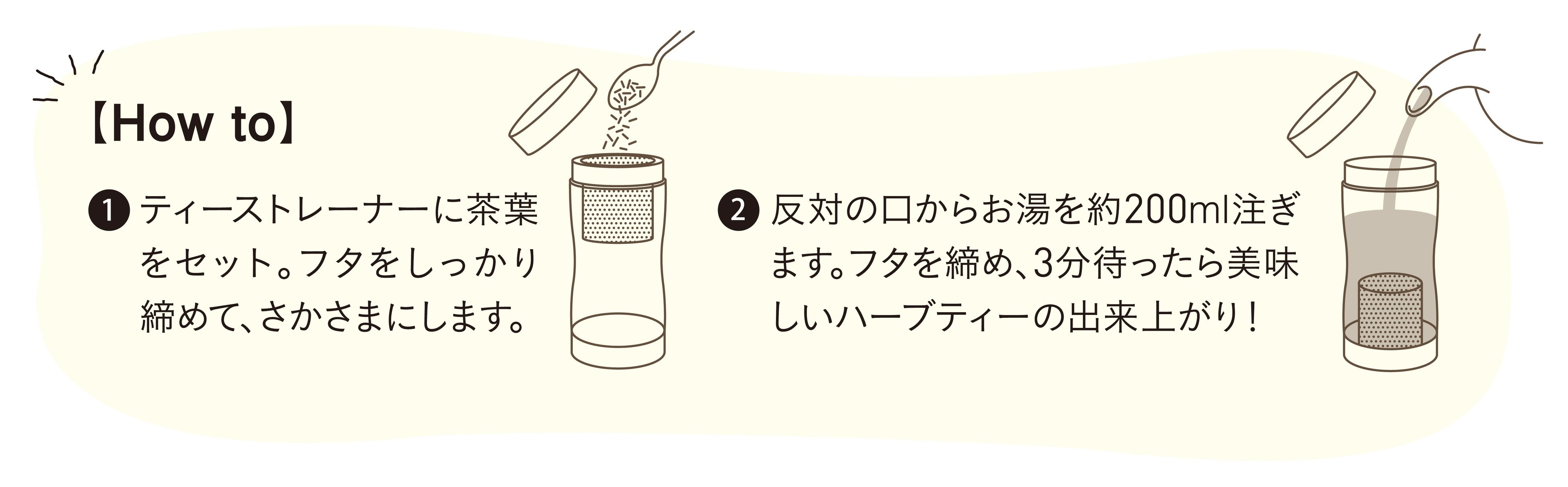 香りを逃さず、茶葉をしっかり蒸らせるフタと、ハーブの細かい茶葉も通さない目の細かいフィルターがセットになっており、美味しくハーブティーを淹れられます。