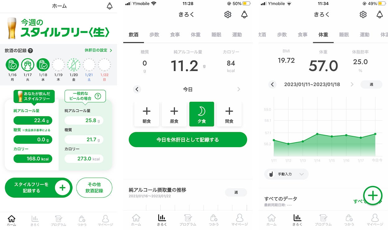 また 3月1日からは、スマートフォン用アプリ「スタフリ」を新たに利用開始します。このアプリは飲酒した商品の純アルコール量、糖質、カロリーを記録できるほか、体重や食事、運動量、睡眠なども記録し、可視化することができます。無料で利用することができ、「朝食を登録する」「2,000歩歩く」などのミッションをクリアすることでポイントを獲得でき、そのポイントを使ってキャンペーンに応募できます。