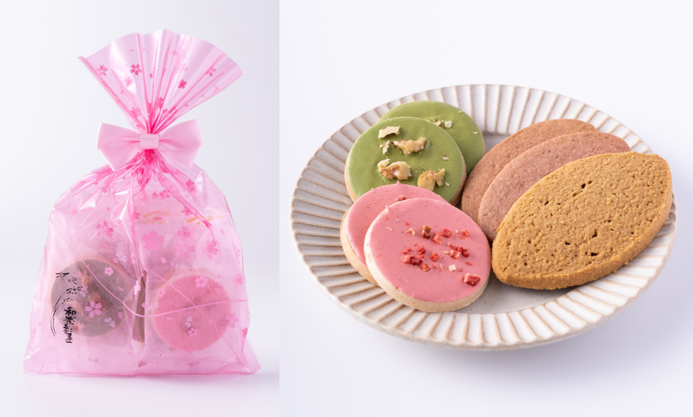 ザクザク食感の香ばしいピーナッツ最中に抹茶や苺を合わせ、華やかに可愛らしく仕上げた「彩最中」と、米粉や全粒粉を使った軽い食感のクッキー「みのり」を桜柄のパッケージに詰め合わせました。春限定のフレーバーも入ったこの時期だけのプチギフトです。