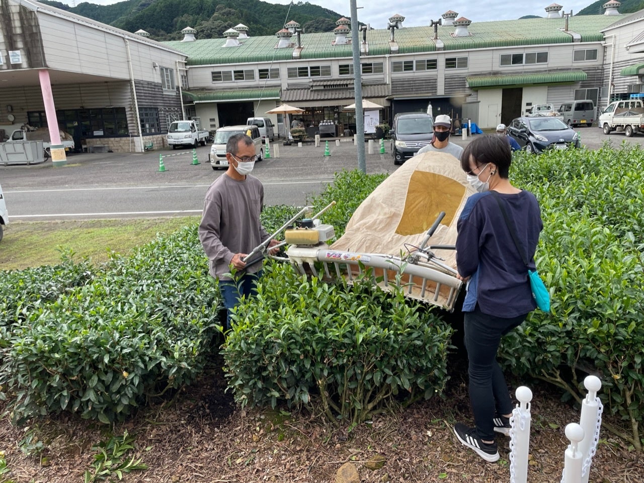 難しい専用のお茶刈り機を使う作業もプロと一緒だから安心して体験できます。