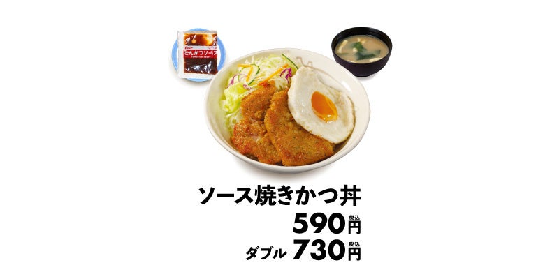 | 商品名 ソース焼きかつ丼 590円 ソース焼きかつ丼ダブル 730円 ※お持ち帰りいただけます。お持ち帰りにみそ汁は付きません。 お持ち帰りの場合、みそ汁は別途60円でお求めいただけます。 ※税込み価格です。 発売日 2023年3月7日(火)午後3時 ~ |