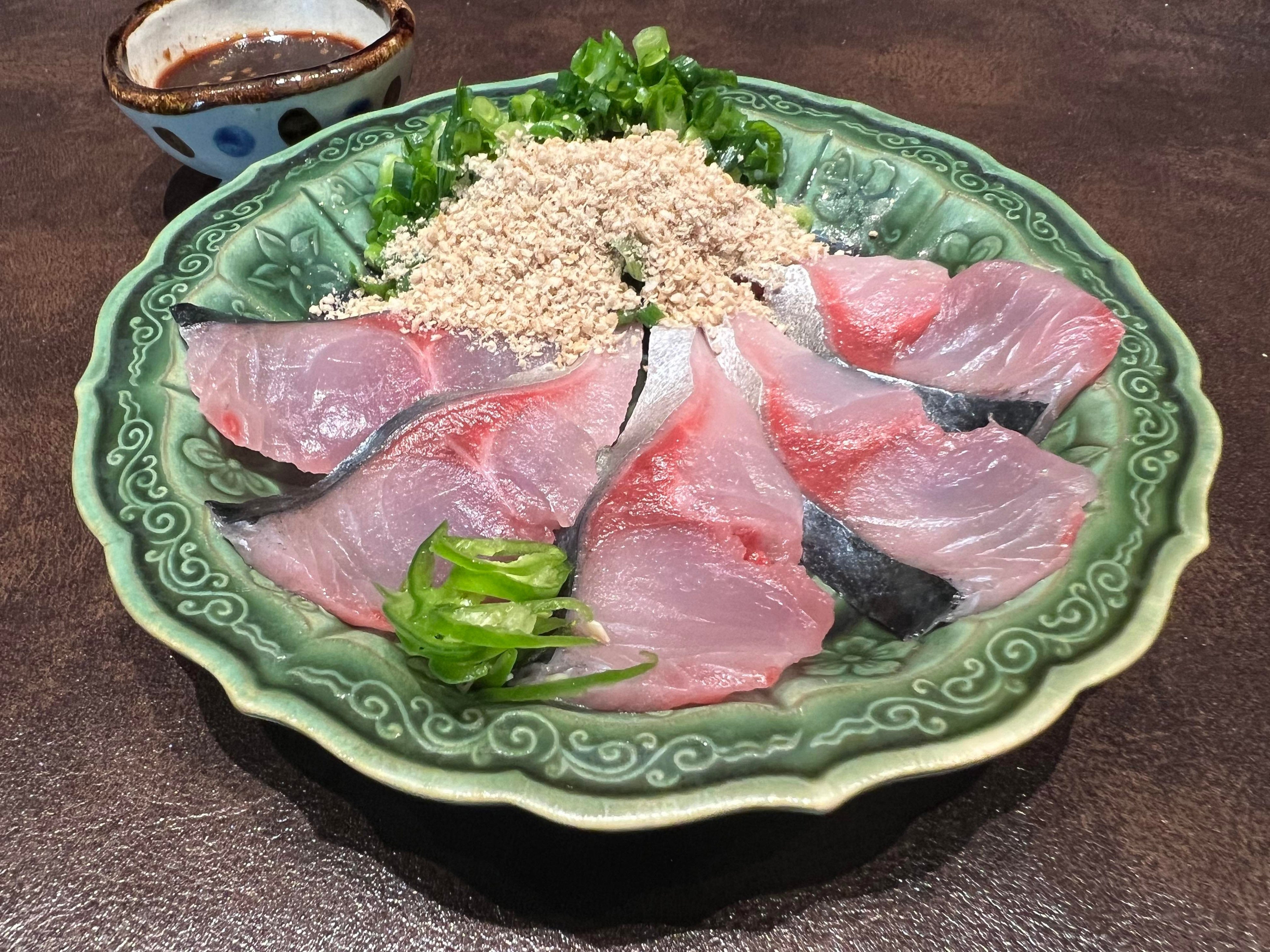 店舗名にも入っておりますが、味噌、醤油、ゆず胡椒、調味料など、九州から美味しいものを取り寄せて使用しております。店主の兄弟が勤めている福岡の柳橋連合市場にある、右近商店さんから送られてくる新鮮な天然鮮魚は、生、焼、揚と色々な調理方法で召し上がっていただけます。お肉は、とても希少価値の高い「佐賀牛 なかむら牛」を使用しております。また、博多の名物の1つでもある「一口炊き餃子」や、さらに、大分県日田市のご当地グルメ「日田焼きそば」店主自ら食べ歩いて研究した、当店のオリジナルの日田焼きそばを提供致します。当店では、いろいろなものを召し上がっていただきたいので、一皿ずつ取り分けてお出しいたします。こだわり抜いた食材を鉄板焼きで、楽しみながらお召し上がりくださいませ。