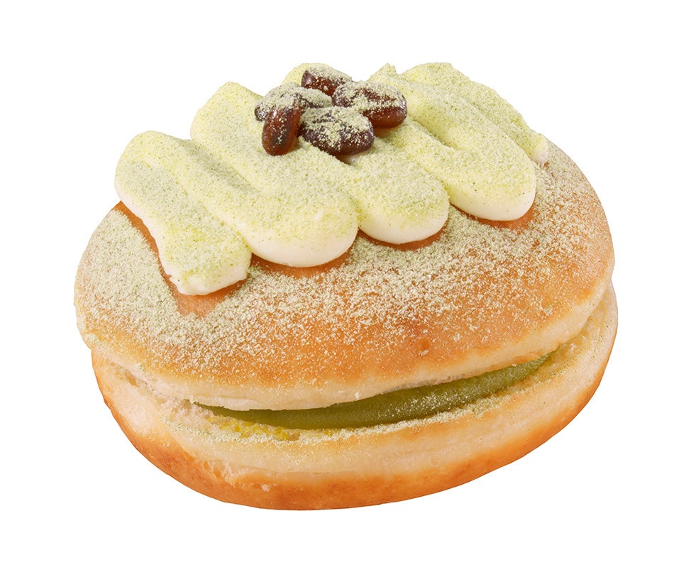 『クリスピー・クリーム・プレミアム 名古屋 西尾抹茶ミルク』は、愛知県の名産品である西尾抹茶入りのクリームを使用し、緑が芽吹く春をイメージしたドーナツです。風味豊かな抹茶クリームをサンドした生地に、優しい甘さのミルククリームを絞り、小豆をトッピングしました。最後に抹茶パウダ―を振りかけることで、春らしい装いに仕上げています。