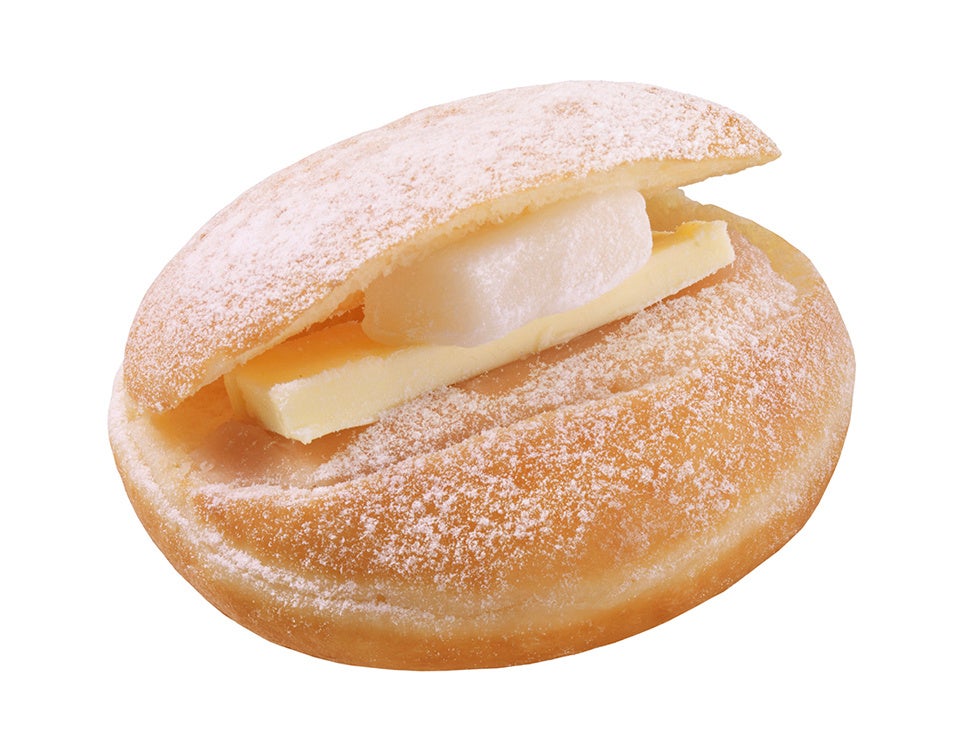 『クリスピー・クリーム・プレミアム 名古屋 求肥餅&桜あんバター』は、桜がふわっと香る春のあんバタードーナツです。ふわふわの生地に桜あんと、芳醇な味わいの北海道産バター、さらに求肥餅を挟みました。桜あんに練りこまれた塩漬けした桜葉の塩気と、求肥餅のモチモチした食感がアクセントになっています。