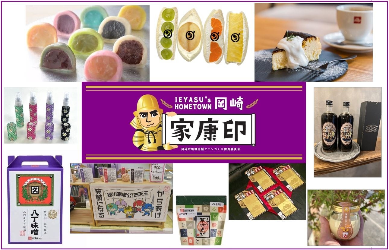 ”岡崎市地域店舗ファンづくり推進事業”の登録店舗「家康印(いえやすじるし)」のうちの10店舗が、グルメ・スイーツ・雑貨など、岡崎市伝統の逸品から新しい商品まで、幅広いラインアップをご用意して皆さまをお待ちしています!家康公にちなんだ商品も。