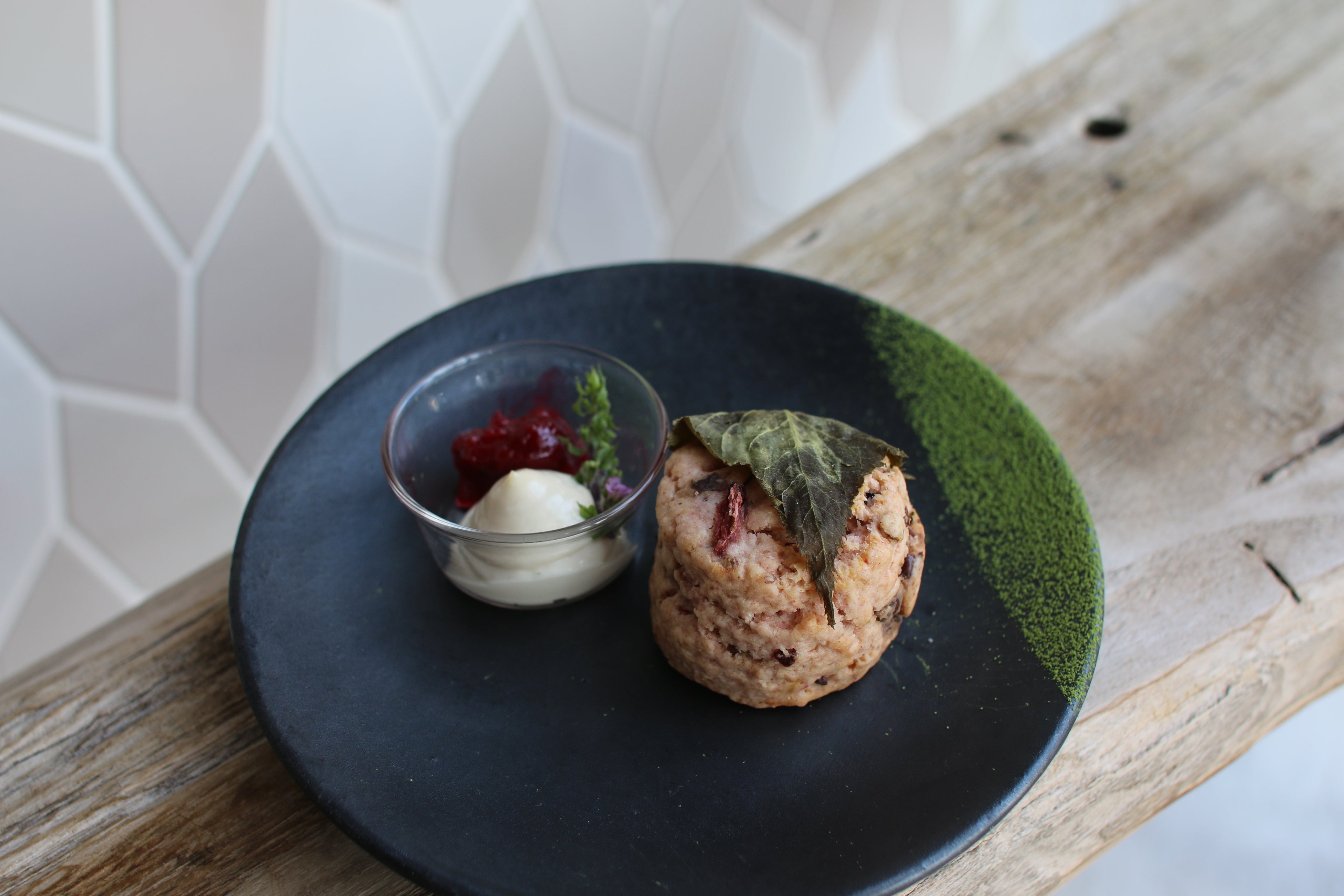 桜餅のように、桜の葉で包まれた桜の生地にあんこが入っている新感覚スコーン。