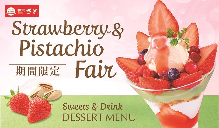 国内202店舗を展開する「和食さと」では、フレッシュ苺とピスタチオクリームを使用した期間限定のデザートを、3月2日(木)より販売します。