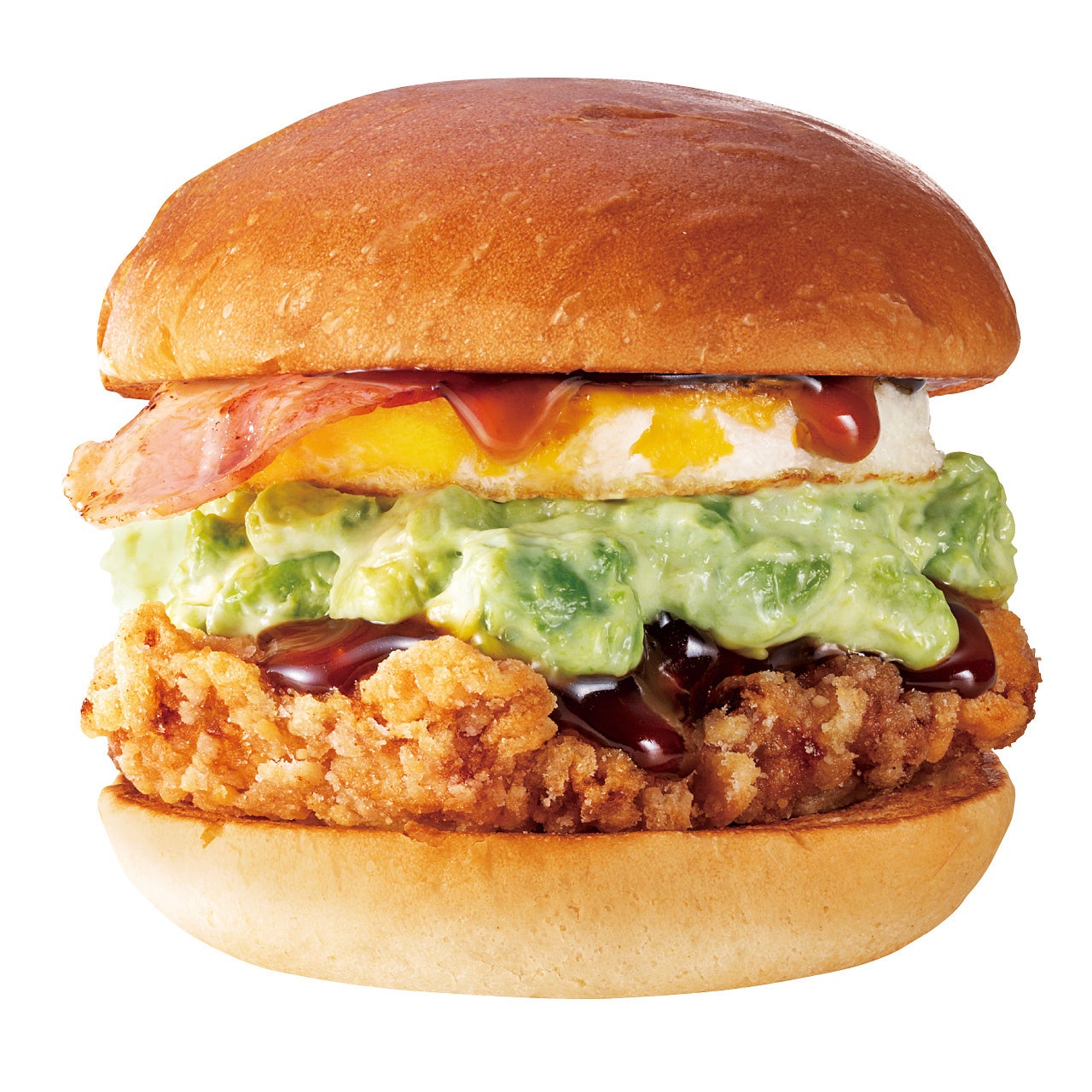 ファーストキッチンオリジナルの醤油を加えたバンズ、さくさく衣と出汁を効かせた下味が特徴のチキン竜田を挟みました。ファーストキッチンオリジナルのてりやきソースに、アボカドとマヨネーズの調和が楽しめるチキンバーガーは旨味がぎゅっと詰まった、見た目にも食欲をそそるハンバーガーです。この春だけの期間限定商品です。