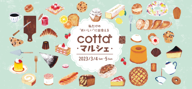 cottaマルシェとは、お菓子・パン作りのための日本最大級の総合サイト「cotta」と、全国各地で開催している ハンドメイドの祭典「ハンドメイドマルシェ」が共催する2日間限りのお菓子&パンの祭典です。