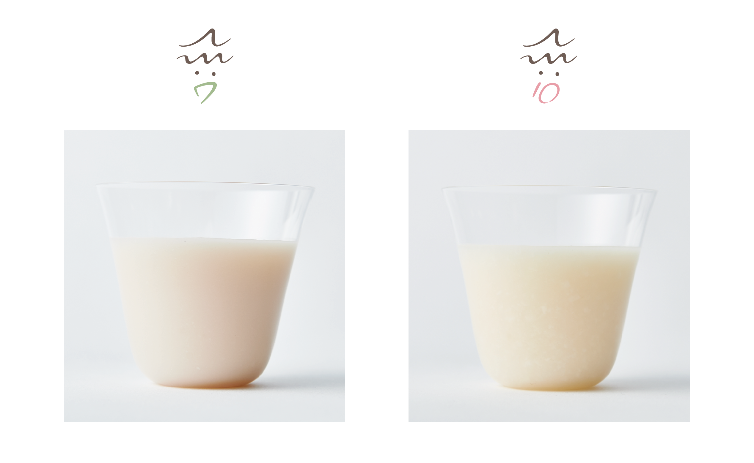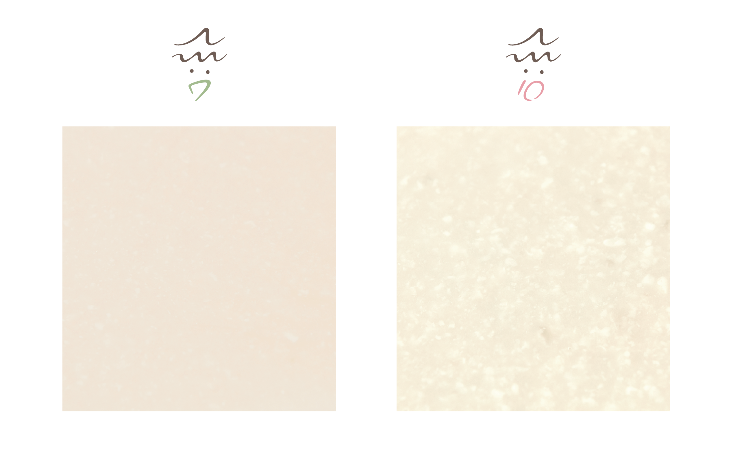 (AM7とAM10の比較画像。視覚的にはわずかな差に見えますが、人間の舌は敏感なため、口に含むと大きな違いを感じ取れます)