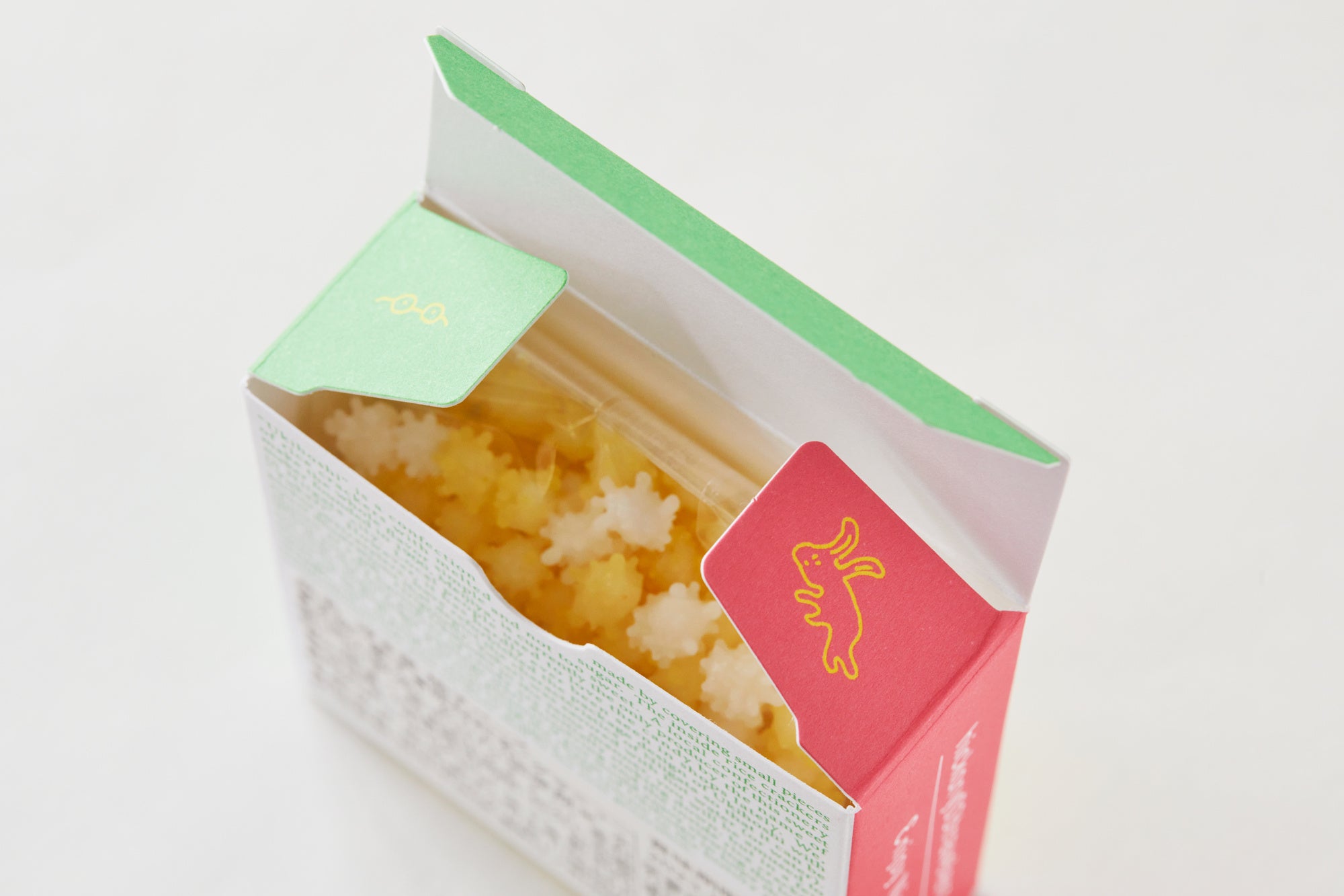 このままでは絶滅してしまうのではと私たちは勝手に心配しました。なんとか後継を作るべく全国のまだ知らない人達に向けて魅力がしっかり伝わるように想いを文字とデザインを活用し新しいブランドとして誕生したのが「浮き星」です。星のような可愛い形と、お湯に浮いてくる飲めるお菓子という珍しい特徴をを合わせ「浮き星」®︎という名称になりました。このような地理的背景や歴史を感じつつお楽しみいただけますと幸いです。