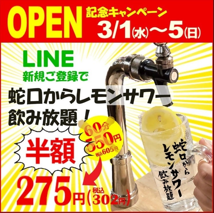 【詳細】 蛇口からレモンサワー100分 990円(税込1,089 円)