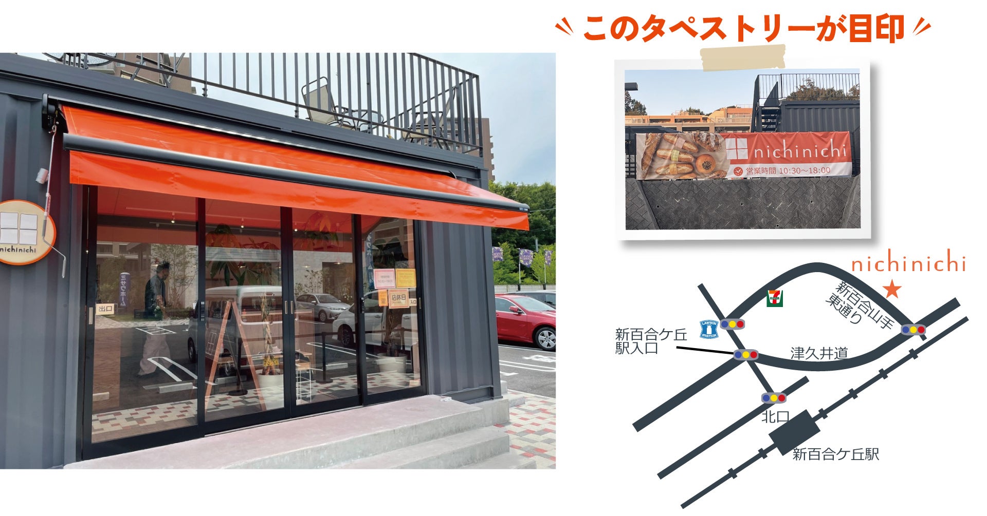 「nichinichi(ニチニチ)」は、国産小麦100%・地場野菜・地場卵を使用した、身体に優しくておいしいパンを、毎日丁寧に焼いています。 皆様の日日に寄りそい、生産者との架け橋になるようなお店を目指して参ります。