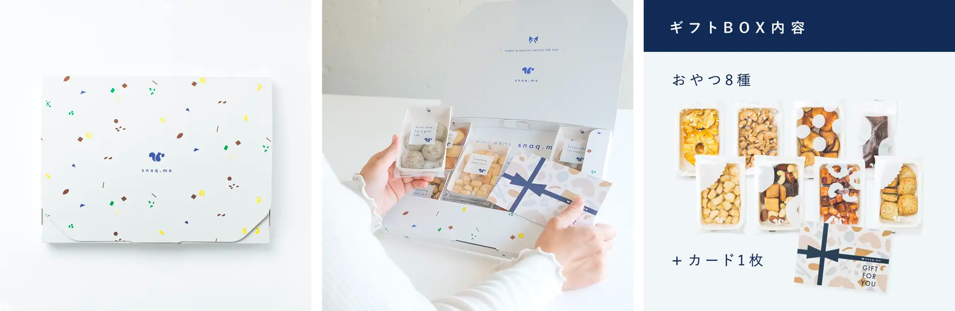 スナックミーでは、相手の好みがわからなくても、オンラインで手軽に自分好みのおやつを贈ることができる「snaq.me eGift」を提供しています。