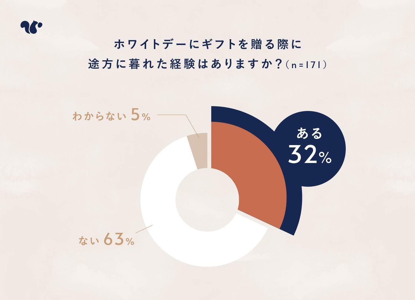 一方で、ホワイトデーのプレゼントを選ぶ際に途方に暮れた経験のある人は32%。