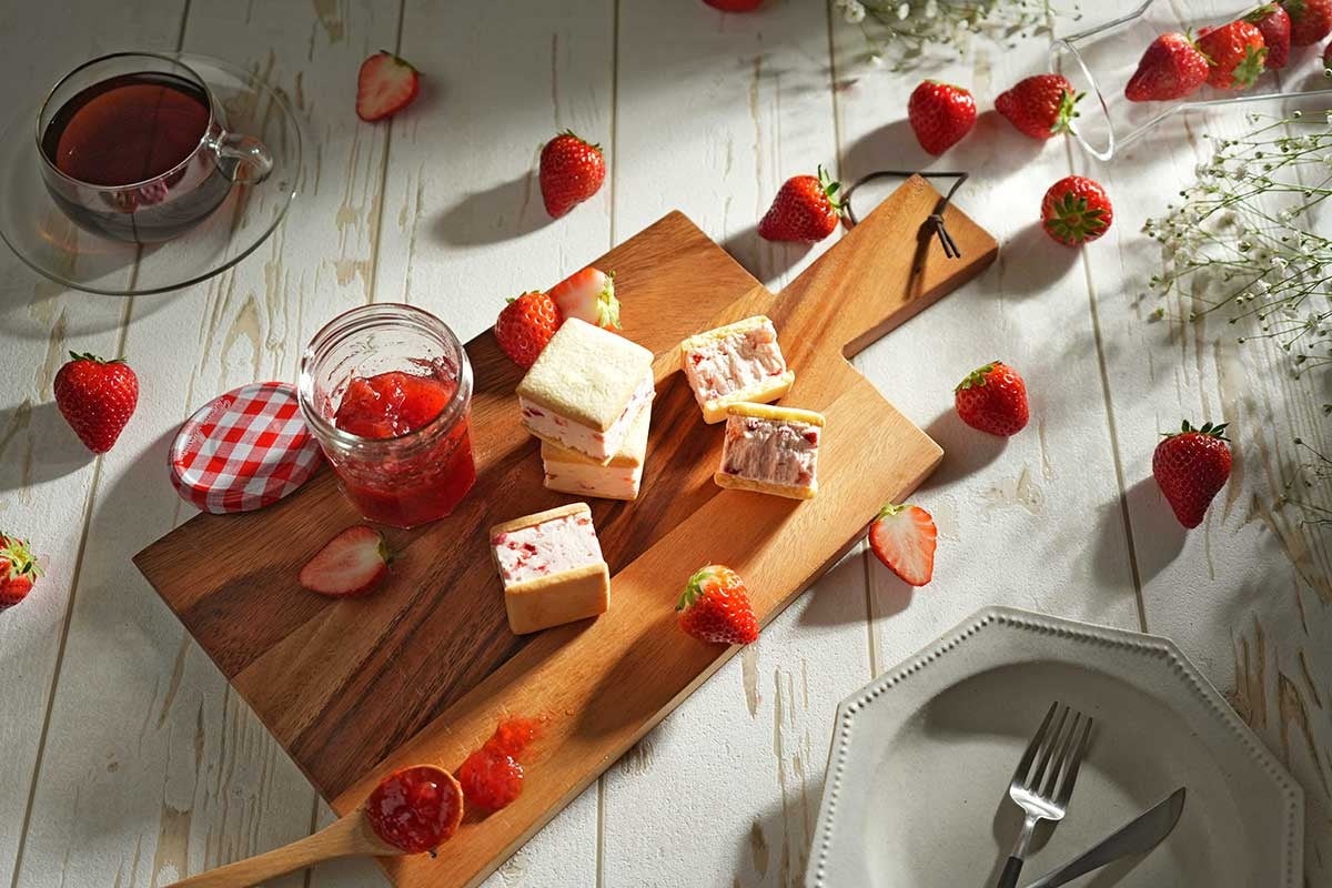 ひとくち食べればクリーミーなくちどけの中に、いちごの素材が贅沢なほど感じられ、誰もが幸せな気持ちになること間違いなし!