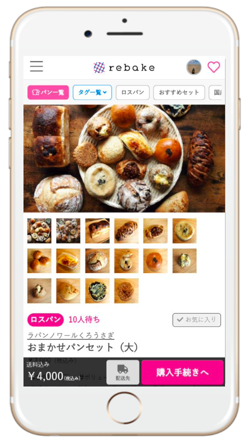 日本全国のこだわりのパンの通販購入や、廃棄になりそうなパンの購入により廃棄をなくすことに貢献できる、日本最大級のパンの通信販売プラットフォームです。rebakeでは、パンの廃棄を減らすべく、廃棄になってしまいそうな“ロスパン”を積極的に扱っています。ユーザ ーは、日本全国のこだわりのパンを自宅で楽しめ、かつフードロスという社会問題の解決にも貢献でき、パン屋さんは、廃棄による心理的負荷を減らし、美味しいと言ってもらえる幸せと、売上を増やすことができます。rebake は、「パンの廃棄削減によるフードロスの減少、持続可能な社会の実現」を目的に運営しています。