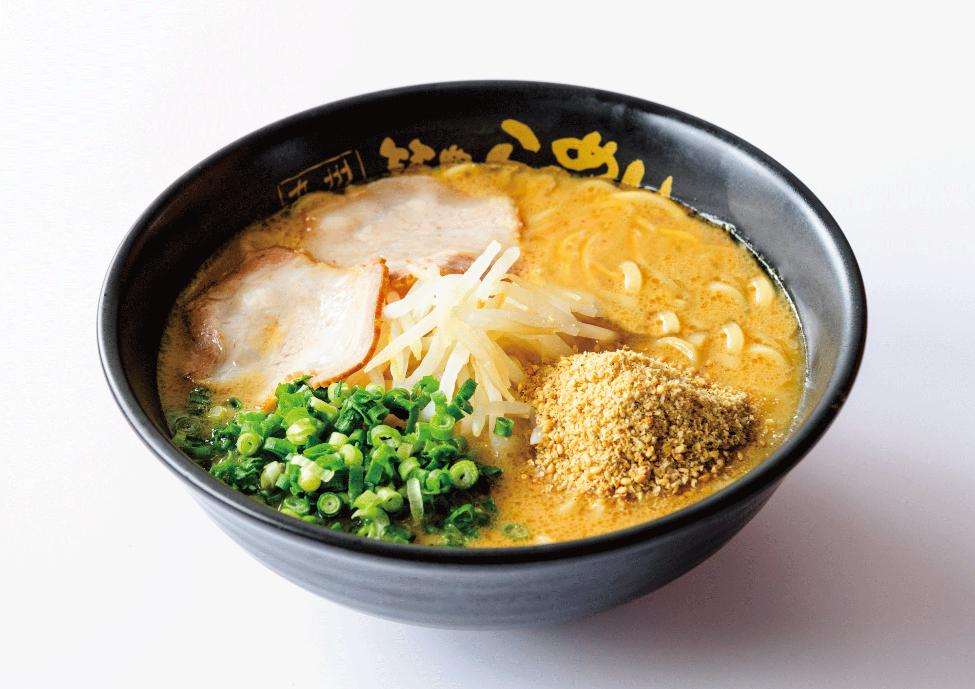 濃厚な特製ごまペーストとマイルドな味噌をブレンドし、 のど越しの良い平打ち太麺を使用した、ごまの香り豊かなラーメンです。