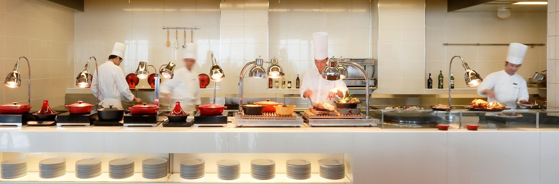 高さ日本一の超高層ビル「あべのハルカス」の上層階に位置する「大阪マリオット都ホテル」。 お子様から大人まで、幅広く多彩なニーズにお応えするブッフェスタイルのレストランです。 シェフが目の前で仕上げる出来立てのメニューはもちろん、あつあつのメニューをスタッフがワゴンサービスでお席までお届けいたします。 お料理もお飲み物も存分に召し上がっていただける、充実のライブキッチン「COOKA」のブッフェをご堪能ください。