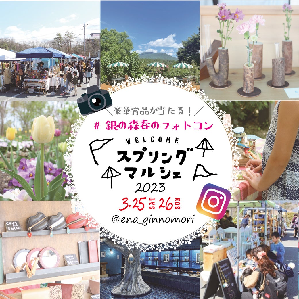 概要:恵那銀の森のInstagramアカウント(@ena_ginnomori)をフォロー・「#銀の森春のフォトコン」「#スプリングマルシェ2023」をタグ付けしてイベントを楽しんでいる写真をInstagramに投稿。