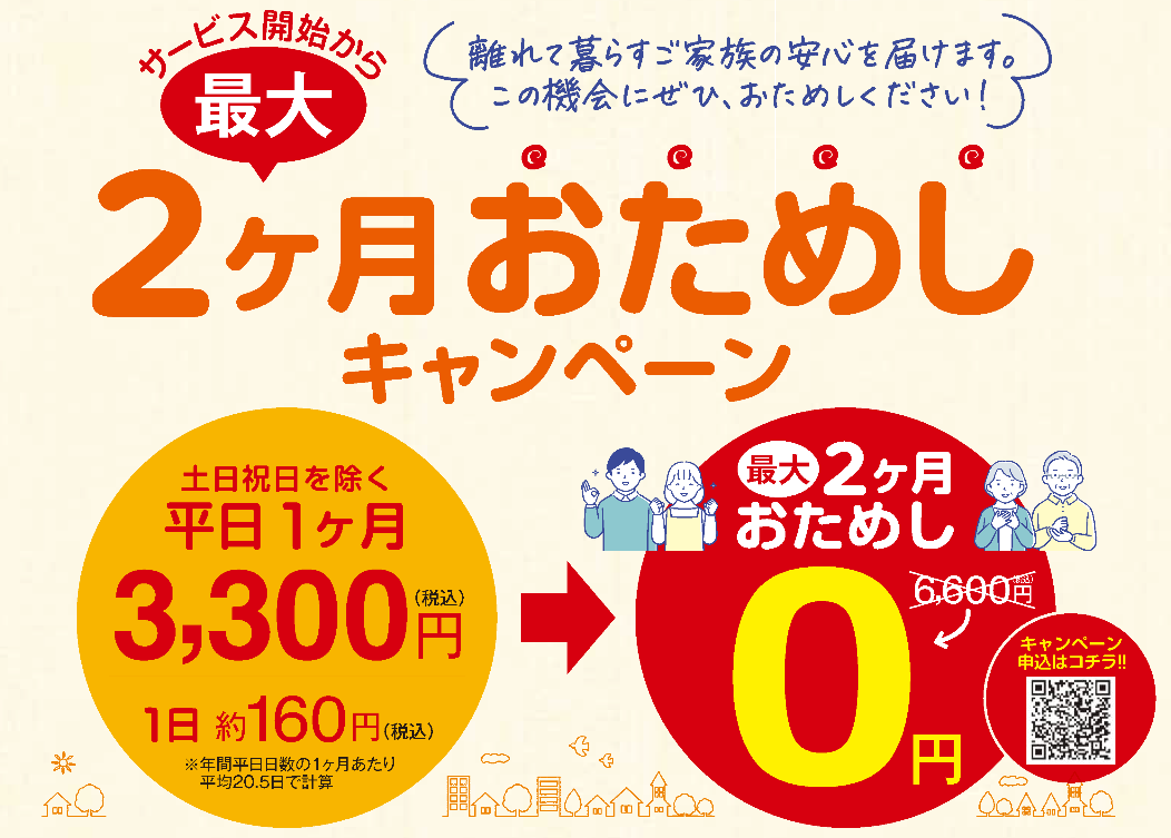 ・対象者:本サービスを初めてご利用される方、本キャンペーンの内容に同意いただける方、みまもり対象者の同