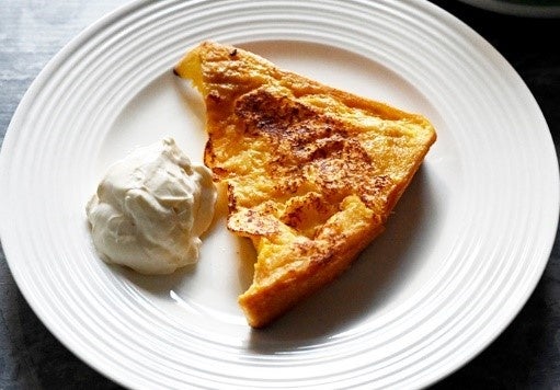 ①ボウルに卵を溶き、バニラヨーグルトを入れて混ぜ合わせる。