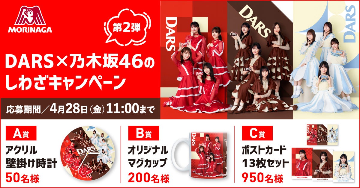 森永製菓株式会社(東京都港区芝 代表取締役社長・太田 栄二郎)は、ミルクにこだわった粒チョコレート「ダース」と、「ダース」のブランドアンバサダーを務めている乃木坂46がコラボレーションした「DARS×乃木坂46のしわざ プレゼントキャンペーン“第2弾”」を、3月6日(月)11:00より応募受付開始いたします。