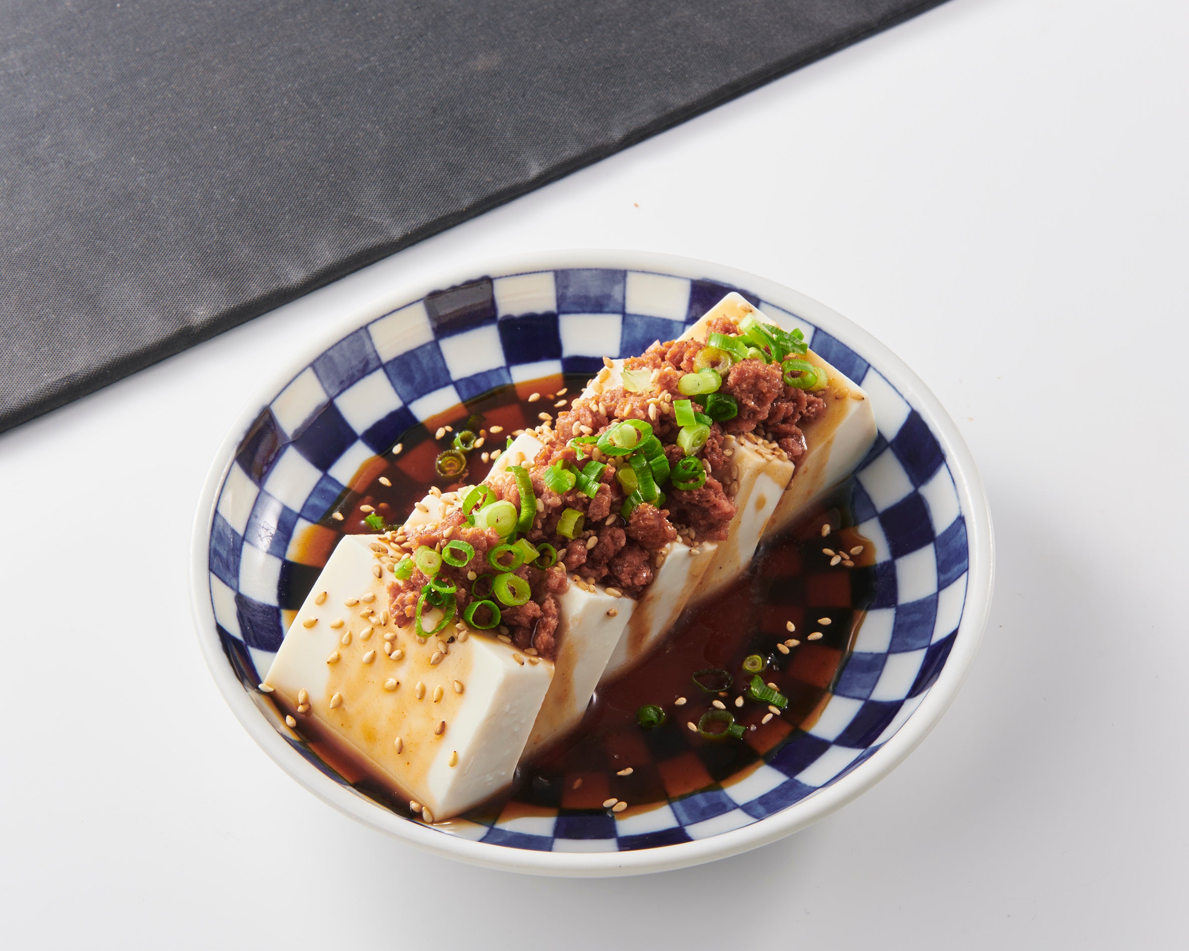冷奴にv2mince(ミンチ)のそぼろをかけた一品。シンプルゆえに、v2mince(ミンチ)の美味しさをダイレクトに楽しんでいただけます。