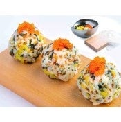 とびっこ、たくあん、韓国海苔、マヨネーズをお好みで混ぜて、丸く握って完成。子供も大好き。