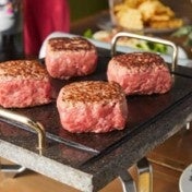 溶岩プレートで焼くハンバーグのBBQスタイルが人気。