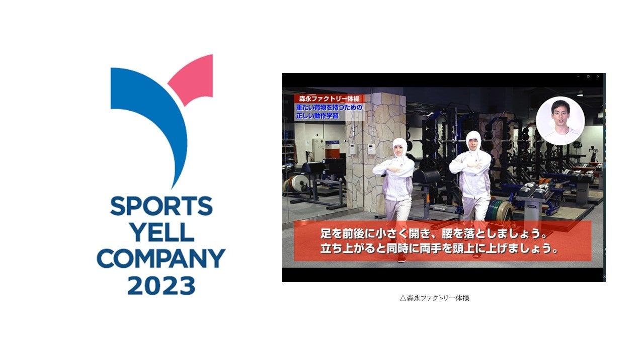 この度、トップアスリートをサポートしている弊社のinトレーニングラボのトレーナーが工場勤務者向けに腰のケガの予防を中心とした体操(「森永ファクトリー体操」)を考案、開発し、体操を通じて運動の継続実施促進を行うに加え、全従業員の健康増進を目的とした自発的な活動を促す取り組みが評価され、「スポーツエールカンパニー2023」に認定となりました。
