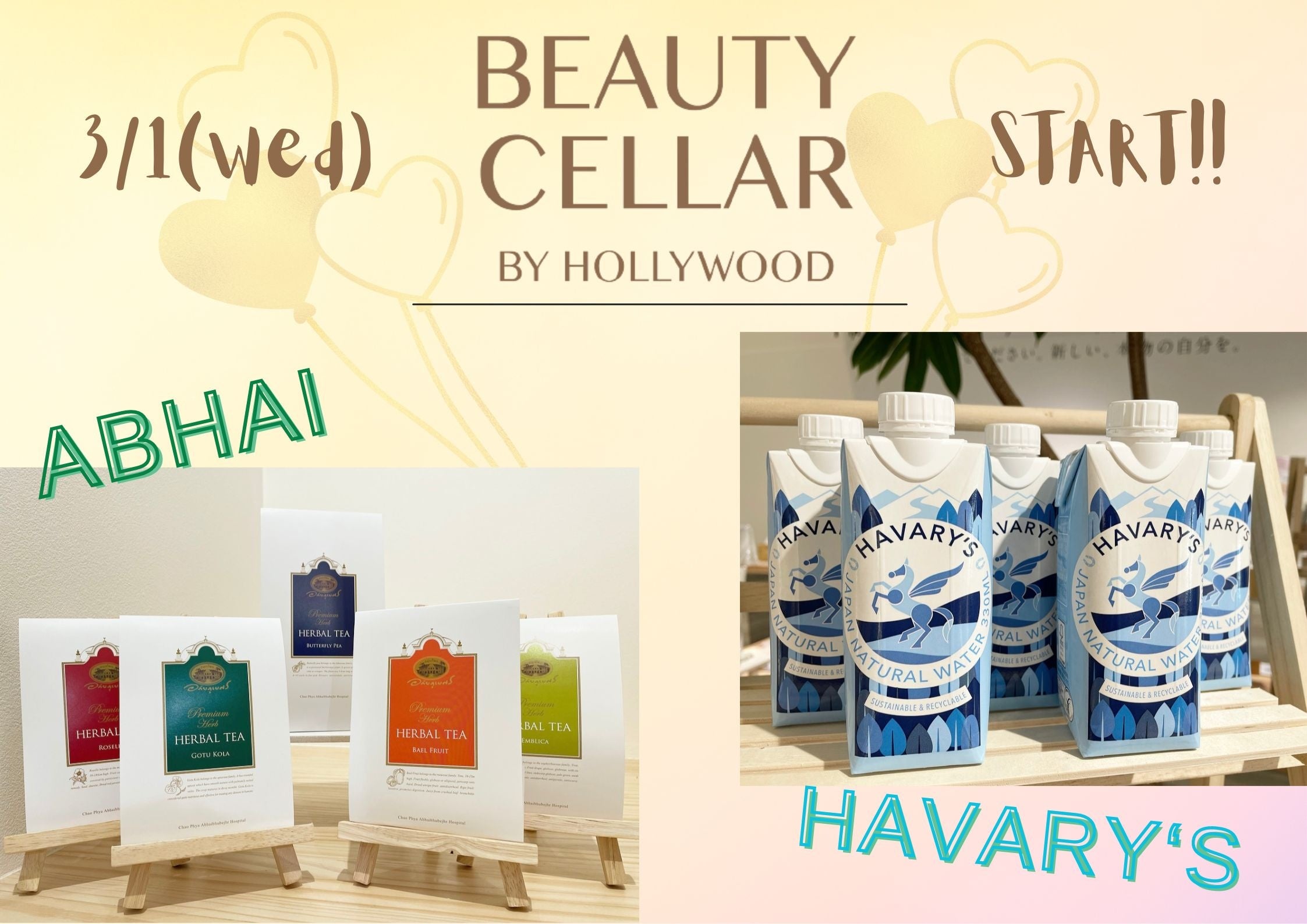 ハリウッド株式会社(本社:東京都港区六本木)が運営するビューティセレクトショップ「BEAUTY CELLAR神戸三宮店」は、2023年3月1日(水)より王室に受け継がれたプレミアムハーブ『アバイブーベ』とリサイクルできる紙パックウォーター「HAVARY’S」の取り扱いがスタートしました。