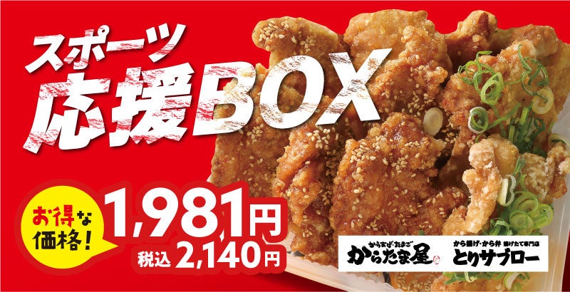「からたま屋」「とりサブロー」より、「スポーツ応援BOX」が3月8日(水)~期間限定で登場いたします。
