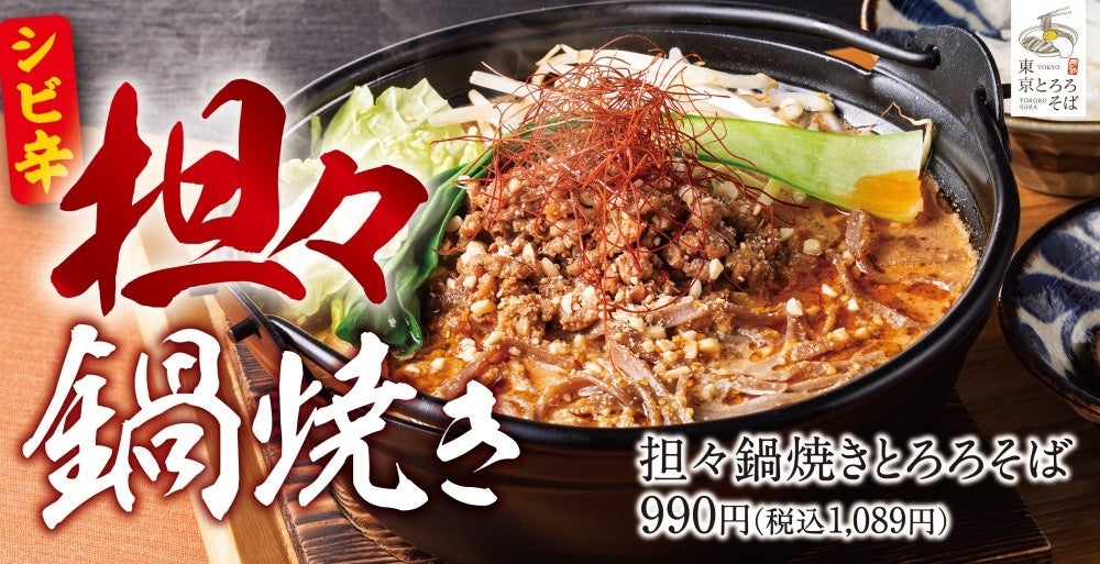 シャキシャキの千切りとろろが唯一無二の、とろろそば専門店「東京とろろそば」にて、人気を博す期間限定メニュー”鍋焼きシリーズ”最終章「担々鍋焼きとろろそば」を2023年3月10日(金)より期間限定で販売を開始いたします。