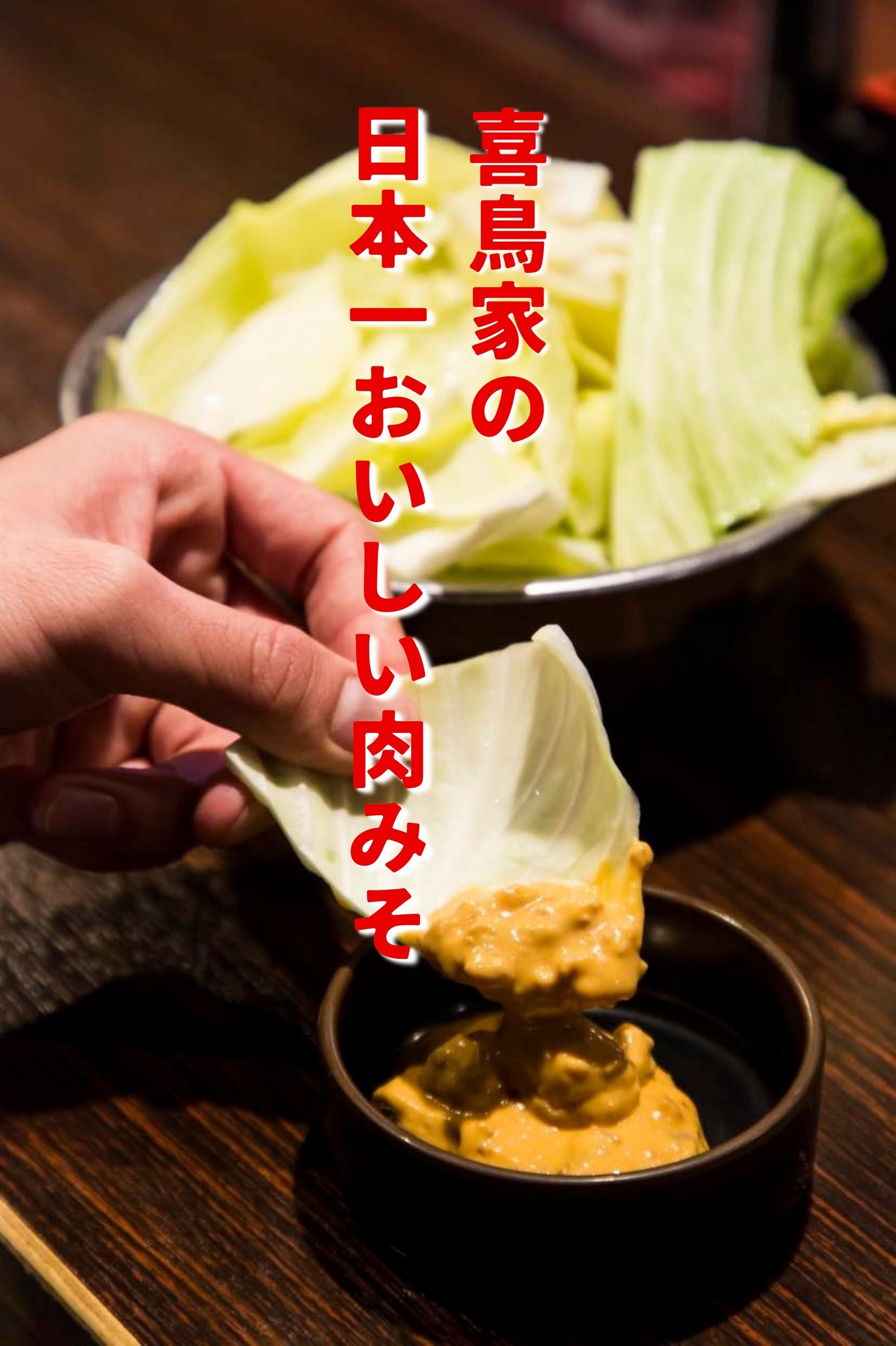 「日本一おいしい肉みそ」は、喜鳥家の全店でキャベツと一緒に提供されている、大人気の定番メニューです。「野菜嫌いの子供でも、野菜をおいしく食べられるようになる」という、魔法のような逸品。某有名YouTuberに紹介いただいたことで、全国にその名を轟かせています。