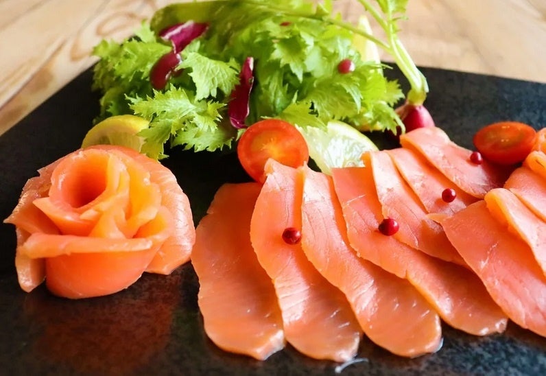 ◆藻塩で作られたとろけるような口当たりのスモークサーモン
