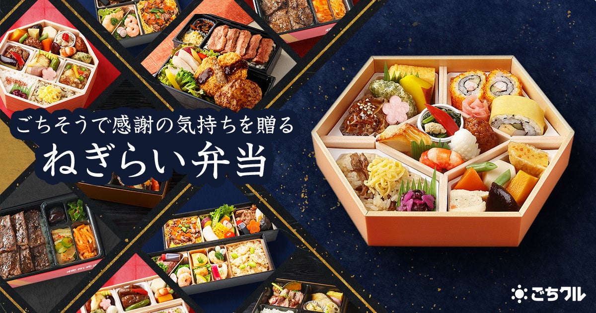 こうした背景を踏まえ、「ごちクル」では、年度末の慰労会や、決算発表会などプロジェクトの節目、社員表彰のお祝いや、父の日・母の日・敬老の日など記念日のギフトとしてご利用いただける「ねぎらい弁当」を特集ページにて公開することといたしました。