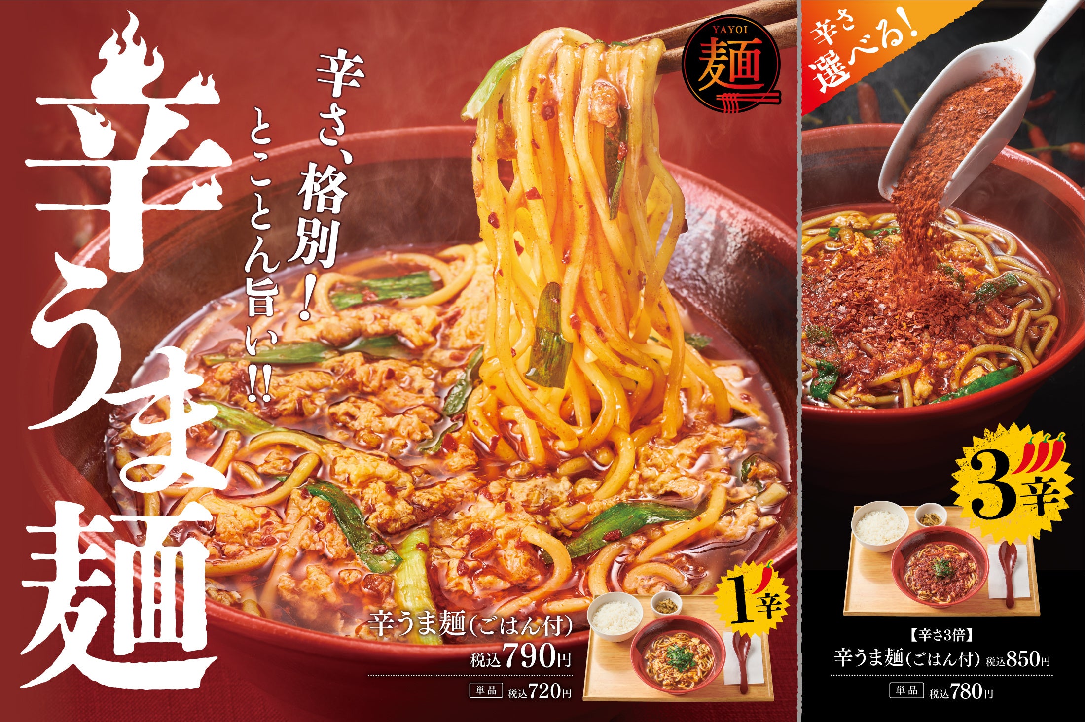 株式会社プレナスは、定食レストラン「やよい軒」を、2023年2月末現在364店舗展開しております。このたび「やよい軒」では、モチモチな麺と旨味たっぷりの辛味スープが相性抜群の宮﨑名物の辛麺をやよい軒風にアレンジした『辛うま麺(ごはん付)』790円、『辛うま麺(単品)』720円を発売いたします。また、より辛さを求める方向けに『【辛さ3倍】辛うま麺(ごはん付)』850円、『【辛さ3倍】辛うま麺(単品)』780円も発売いたします。やよい軒風にアレンジした“辛麺”をぜひお楽しみください。