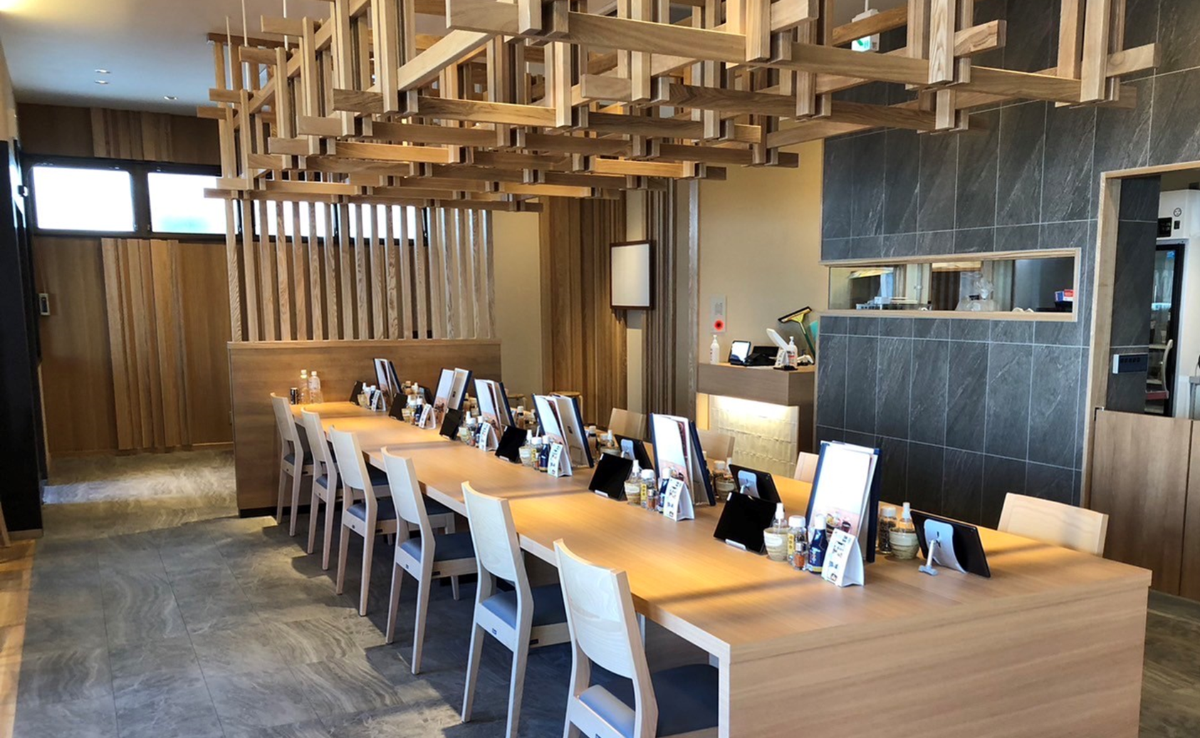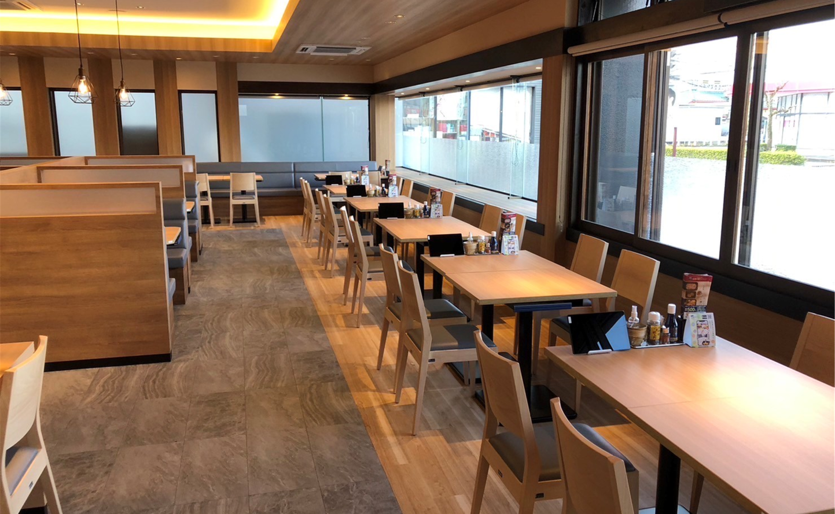 全90席の広々とした店内は、木のぬくもりが感じられる落ち着いた雰囲気でありながら、明るく開放感があり、ご家族や大人数でのお食事にぴったりです。